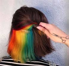 Keep the top layer of your hair natural while dyeing the underside a bright color.