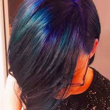 Uneven, feathered layers dyed in unconventional colors bring out your inner rebel.