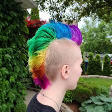 Embrace the full spectrum with a rainbow-colored hairstyle for ultimate punk vibes.